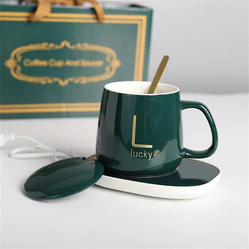 El set incluye todo lo que necesitas: taza de cerámica de 350 ml, base calefactora eléctrica con termostato, cuchara metálica enchapada, tomacorriente y cable UL resistente al fuego. Su base de vidrio templado es impermeable, segura y fácil de limpiar. Simplemente conéctalo y disfruta tu bebida caliente durante toda la jornada.